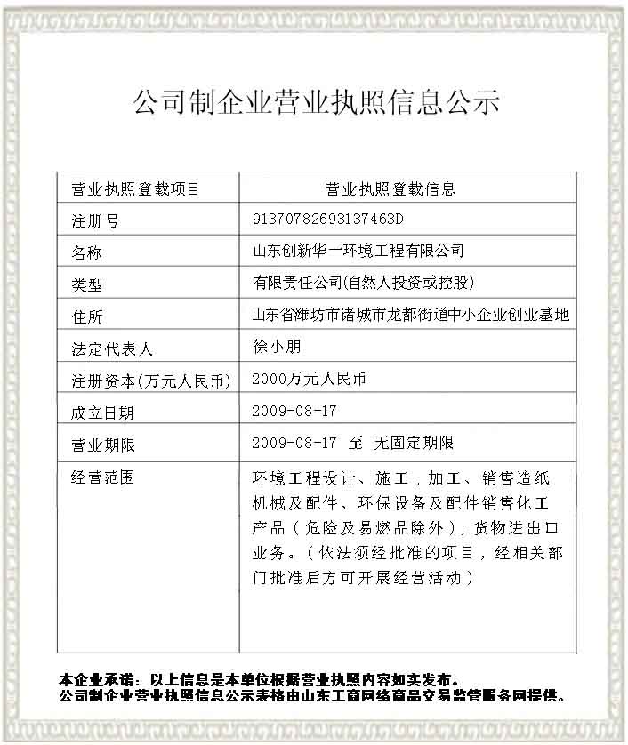 山東創(chuàng)新華一環(huán)境工程有限公司 成立于2009年,注冊(cè)資本2000萬(wàn) 元,是一家集自主研發(fā)、生產(chǎn)制 造、技術(shù)服務(wù)于一體的生產(chǎn)環(huán)保設(shè)備的技術(shù)企業(yè),是哈爾濱工業(yè)大學(xué)、青島大學(xué)、青島海洋大學(xué)的戰(zhàn)略合作單位。